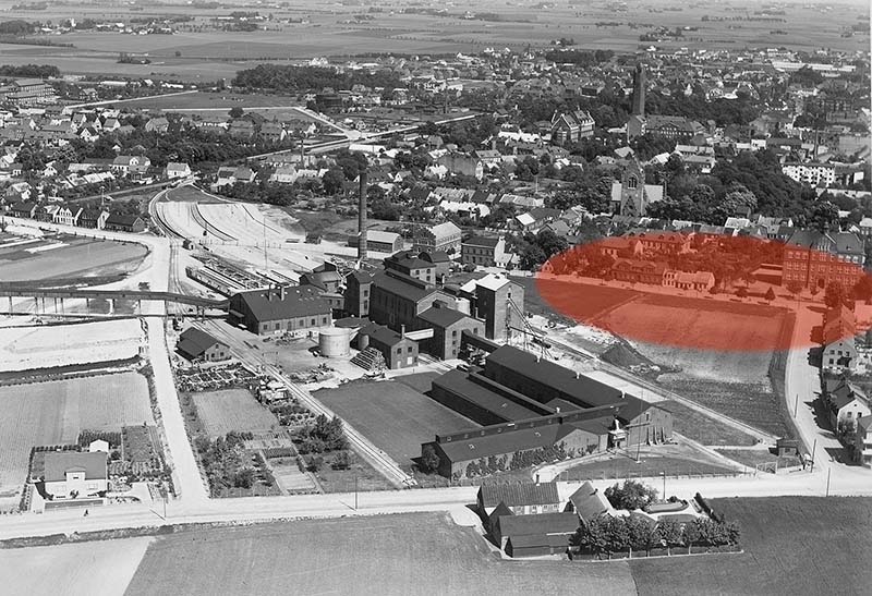 Höjden där vikingaborgen påträffades gömmer flera berättelser. Här stod för 100 år sedan ett sockerbruk. Kontorsbyggnaden som uppfördes 1898 står fortfarande kvar intill den återskapade vikingaborgen vid Gråbrödersgatan.